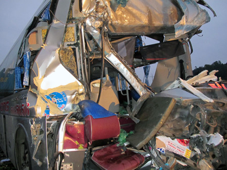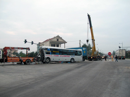 Vụ tai nạn khiến phụ xe khách tử vong tại chỗ và 20 hành khách bị thương. Tài xế và phụ xe container bị xây xát nhẹ.