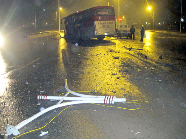 Khoảng lúc 21 giờ ngày 7-4, tại khu vực đường dẫn lên cầu Vĩnh Tuy, chiếc xe khách Hoàng Long mang biển số 16M-7114, lưu thông theo hướng Nguyễn Văn Linh (Long Biên) – Minh Khai (Hoàng Mai) đã lao lên giải phân cách, khiến cột đèn và một biển báo bị đổ vỡ.