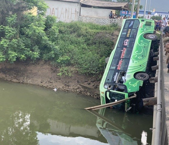 Theo thông tin ban đầu, vào thời gian trên, xe khách BKS 98B - 021.48 đang lưu thông trên đường thì bất ngờ mất lái, lao xuống sông. Do lực cản của lan can cầu nên đầu xe lọt xuống sông còn phần đuôi nằm trên bờ.