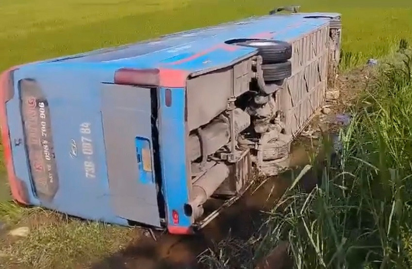 Theo thông tin ban đầu, vào khoảng 14h45 ngày 27/3, xe khách mang BKS 73B-007.84 đang lưu thông trên Quốc lộ 1A theo hướng Bắc - Nam, khi đến đoạn đường tránh (đoạn qua địa bàn thị trấn Mộ Đức, huyện Mộ Đức, tỉnh Quảng Ngãi) thì bất ngờ mất lái, lật nhào xuống ruộng.