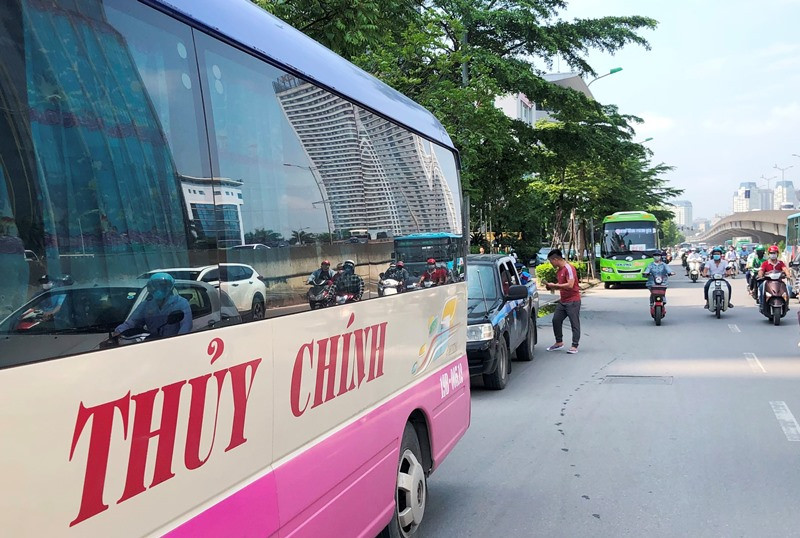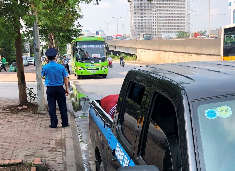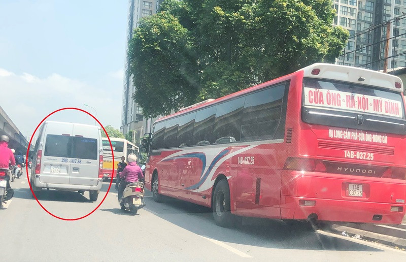 Trường hợp xe khách 29B-417.58 cũng dừng bắt khách trên đường nhưng khi tổ công tác của Thanh tra giao thông cắm chốt trên đường Phạm Hùng yêu cầu dừng xe, xử lý, nhưng xe đã bỏ chạy.