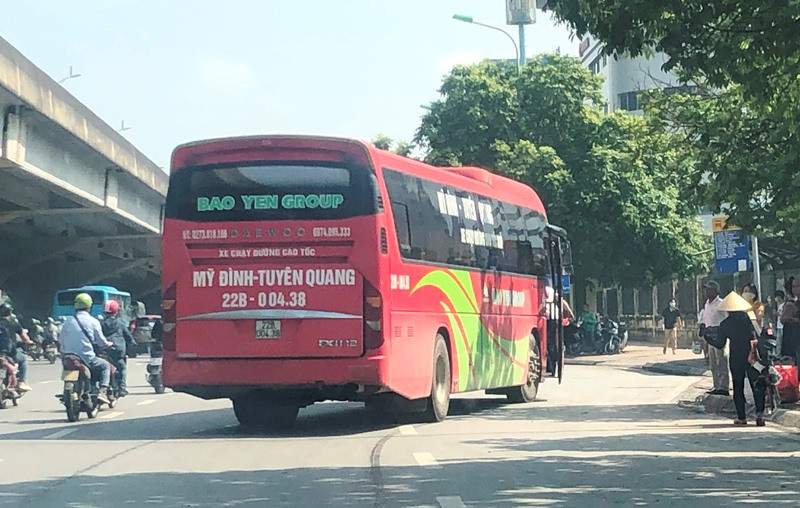Xe khách 22B-004.38 của nhà xe Bảo Yên Group chạy tuyến Tuyên Quang dừng bắt khách trên đường, nhưng tổ công tác cắm chốt sáng 18/8 cũng không dừng được xe. Nguyên nhân, do phương tiện này chạy lòng vòng.