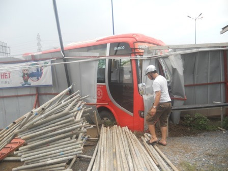 Để không gây tai nạn, tài xế Phương đã đánh lái chiếc xe lao qua phải đâm sập hàng rào chắn công trình đang thi công nhà ga Metro Bến Thành – Suối Tiên gần đó.
