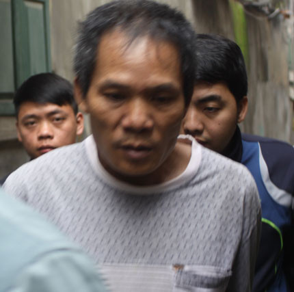 Sáng 17/3, công an đã dẫn giải Lợi về căn nhà đã hành hung cháu Lộc để dựng lại hiện trường. Nhìn cảnh Lợi diễn tả lại hành động dùng điếu cày đánh con trai, rất nhiều người dân chứng kiến đã không cầm được nước mắt.