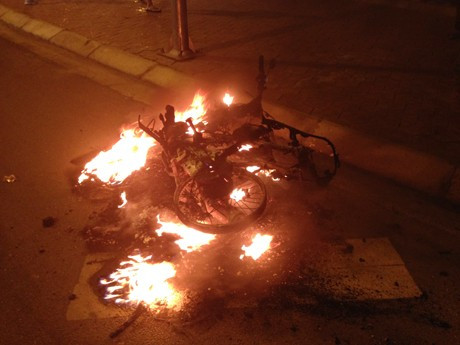 Anh Nguyễn Văn Lâm, phường Bạch Đằng (TP Hạ Long) cho biết: "Tôi đang đi bộ trên vỉa hè thì thấy hai nữ thanh niên điều khiển xe máy wave alpha đi từ nút giao thông Cột Đồng Hồ vào đường bao biển núi Bài Thơ. Khi đi đến gần Công viên Hạ Long chiếc xe bốc khói nghi ngút. Hai thanh niên này đã bỏ xe lại dưới lòng đường chạy thoát thân, ít phút sau ngọn lửa bùng phát, thiêu chiếc xe còn trơ lại khung sắt".