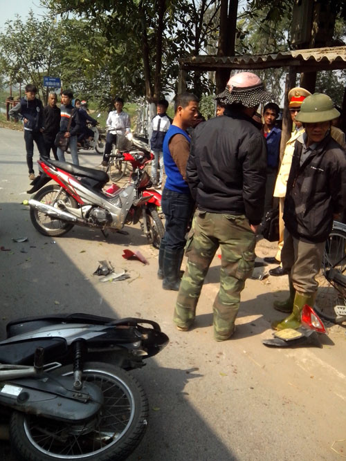 Một số người chứng kiến cho biết, vào thời điểm trên, người điều khiển chiếc xe Honda nhãn hiệu Wave S chở 3 người, lạng lách và phóng nhanh. Khi đến đoạn đường trên do lái xe không làm chủ được tay lái nên đã va chạm với chiếc xe máy Yamaha BKS: 99N1 – 1389 đi ngược chiều. Cú va chạm đã làm cho 5 người đều trong tình trạng nguy kịch.