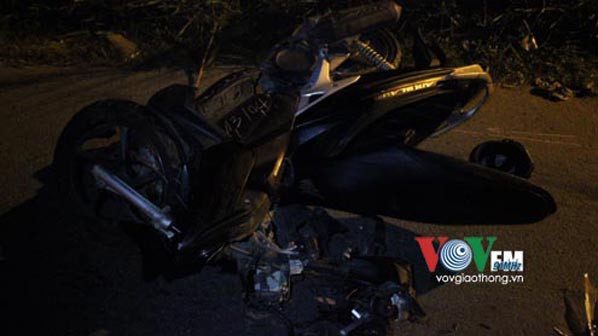 Tại hiện trường, hai xe máy nằm cách nhau hơn 10 mét, hư hỏng nặng, nhiều bộ phận của xe vỡ nát văng ra khắp đường.
