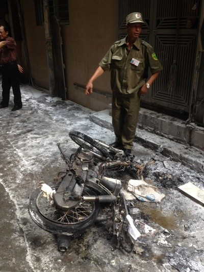 Một số người dân chứng kiến sự việc cho biết, vào khoảng thời gian trên, một thanh niên điều khiển chiếc xe Suzuki Viva đang lưu thông đến trước số nhà 81 phố chợ Khâm Thiên thì chiếc xe bất ngờ bốc cháy dữ dội, kèm theo những tiếng nổ.