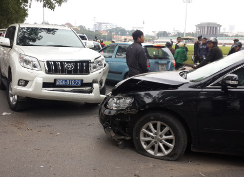 Vào khoảng 16 giờ chiều 10/2, ô tô BKS 29A-206.56 đã gây ra vụ tai nạn liên hoàn trên đường Hùng Vương và ngã ba đường Hoàng Văn Thụ - Độc Lập làm 3 người bị thương, khiến 5 ô tô và xe máy bị hỏng hóc.