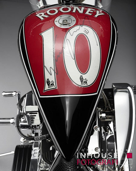 Trong năm 2012, tiền đạo ngôi sao của CLB bóng đá ngoại hạng Anh Manchester United, Wayne Rooney, đã hợp tác với hãng chuyên chế tạo các mẫu mô tô độ Lauge Jensen từ Đan Mạch để thiết kế ra một chiếc xế nổ nhằm đem bán đấu giá với mục đích từ thiện.