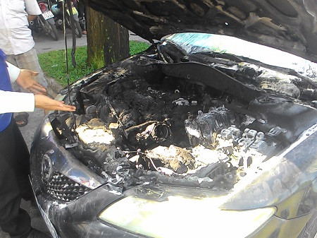Tại hiện trường, toàn bộ phần capô phía trước bị cháy rụi. Rất may không có thiệt hại đáng tiếc về người.