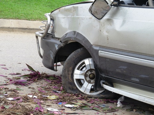 9h sáng 2/5, trên đường từ Cát Bà (Hải Phòng) về Hà Nội, khi qua phà Đình Vũ khoảng 1,5 km thì ôtô 7 chỗ biển Hà Nội bị nổ lốp. Xe chồm lên giải phân cách, lộn nhiều vòng trước khi dừng lại tại làn đường ngược chiều. Các cửa kính vỡ vụn, bắn tung tóe.