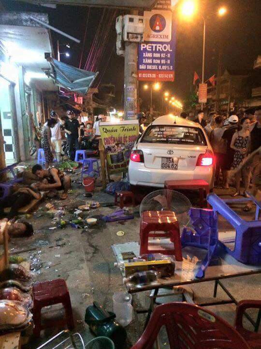 Theo một số người dân sinh sống gần đó, thời điểm trên họ đang ở trong nhà thì nghe thấy một tiếng động cực lớn, sau đó là tiếc đồ đạc đổ vỡ cùng tiếng kêu la hoảng hốt. Người dân chạy ra thì thấy một chiếc xe ô tô nằm chình ình giữ quán ốc, xung quanh là bàn ghế, bát đĩa, người nằm ngổn ngang.