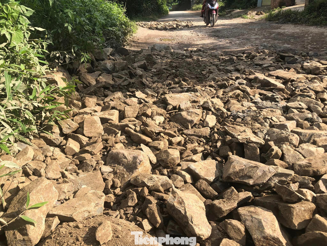 Sau mỗi trận mưa, doanh nghiệp lại cho xe chở đất đá loại to như đá hộc, xỉ gạch ra đổ cạnh các hố, không san gạt. Gạch đá mấp mô, khiến người dân đi lại càng nguy hiểm.