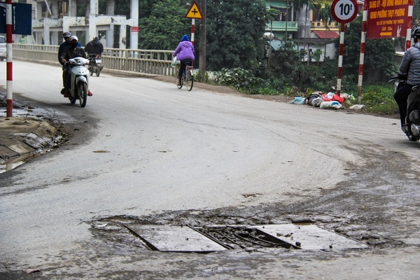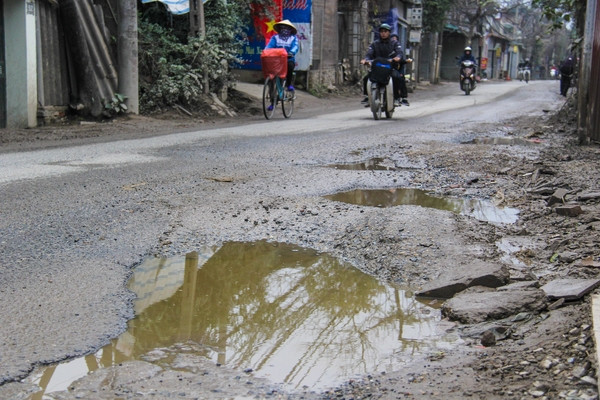 Trên tuyến đường xuất hiện nhiều ổ gà, nhiều đoạn xuống cấp trầm trọng khiến con đường trở nên “dị dạng”.