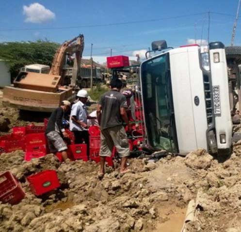 Vào thời điểm trên, xe tải BKS 77C - 033.73 (chưa rõ người điều khiển) chở hàng trăm thùng bia các loại lưu thông theo hướng từ thị trấn Tuy Phước (huyện Tuy Phước) về xã Phước Thuận (huyện Tuy Phước); khi vừa đi vào đoạn đường tránh thì bị lật nghiêng xuống vệ đường nơi công trình đang thi công. Hàng trăm chai bia bị văng ra ngoài và vỡ vụn; ngoài ra, rất nhiều thùng bia còn nguyên vẹn cũng bị đổ xuống, ngập trong sình lấy. Tài xế bị xây xát nhẹ.