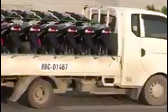 Xe tải chở xe máy đi ngược chiều ở đường trên cao Hà Nội