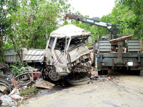 Hậu quả, anh Quyết và 2 người ngồi trong buồng lái là Hoàng Văn Bắc và Đào Hải Anh (tất cả cùng trú huyện Đông Anh, Hà Nội) bị thương nặng.