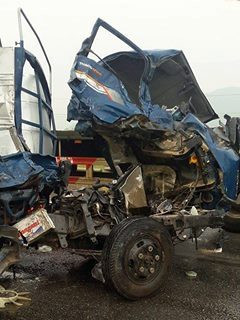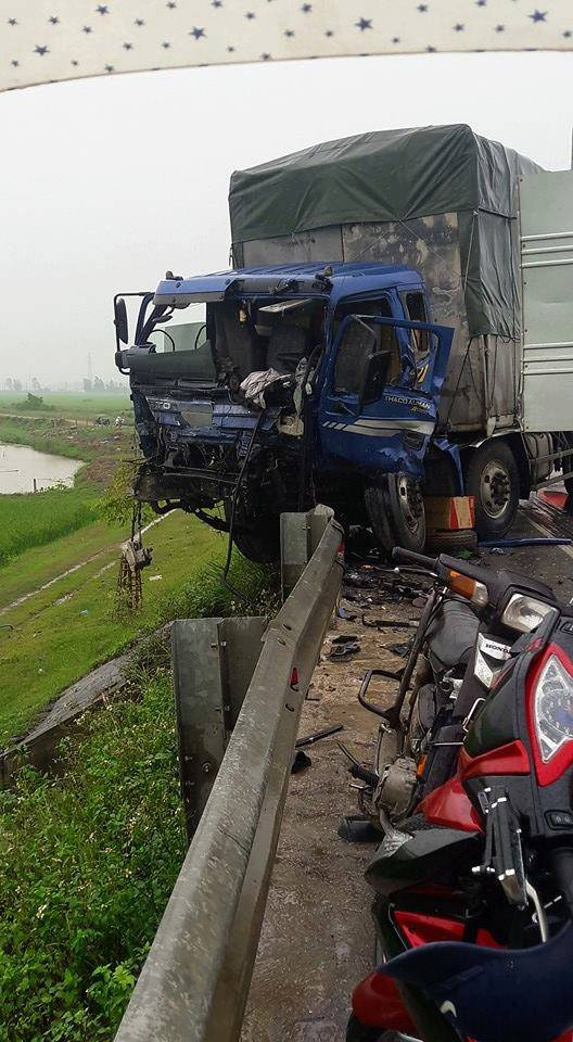 Cú đâm mạnh khiến toàn bộ phần đầu chiếc xe tải nhỏ bị bẹp dúm, biến dạng, tài xế tử vong tại chỗ. Còn xe ô tô tải mang BKS 29C-228.84 cũng bị hư hỏng nặng phần đầu, tài xế và phụ xe bị thương nặng.