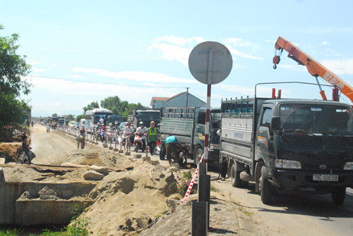 Một đoạn Quốc lộ bị nghẽn vì vụ tai nạn