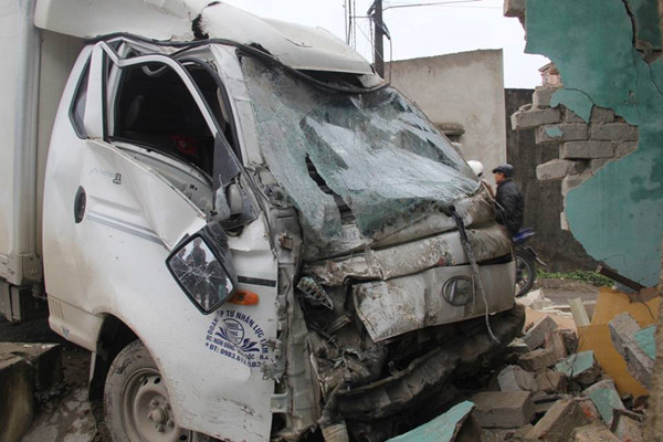 Tại hiện trường, chiếc xe tải bị hư hỏng nghiêm trọng ở phần đầu; bức tường nhà bà Phiến sập đổ, cột biển báo giao thông bị tông gãy. Nhiều đồ đạc trong nhà bà Phiến bị hư hỏng.