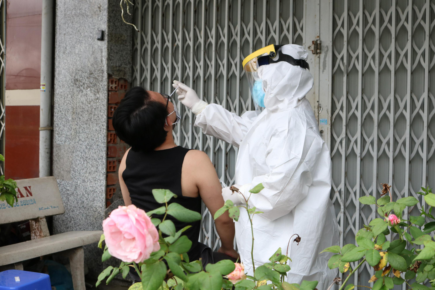 | Ngồi tại nhà chờ được lấy mẫu test COVID-19 - Ảnh: Kim Hà. |