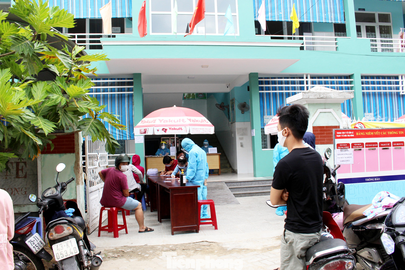 Trạm y tế phường Hòa Thọ Đông (quận Cẩm Lệ, Đà Nẵng) những ngày này luôn đông đúc. Những chiếc xe máy xếp dài đều đặn trước vỉa hè trạm y tế, người dân bịt khẩu trang kín mít, tìm chỗ đứng cách xa nhau và chờ đợi vào đăng ký xét nghiệm COVID–19.