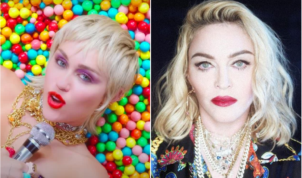 Người xem đặc biệt chú ý tới màn tạo hình ngoạn mục của Miley Cyrus. Chất Rock ‘n’ Roll thuần khiết thể hiện qua từng phụ kiện cô mang trên người: Bao tay da màu đen đính kim cương cách điệu, bốt đen, khuyên tai, quần tất rách… Mái tóc bạch kim kết hợp với lớp phấn mắt dày đậm, óng ánh khiến ta liên tưởng tới hình ảnh "nữ hoàng nhạc Pop" Madonna thời kỳ đỉnh cao.