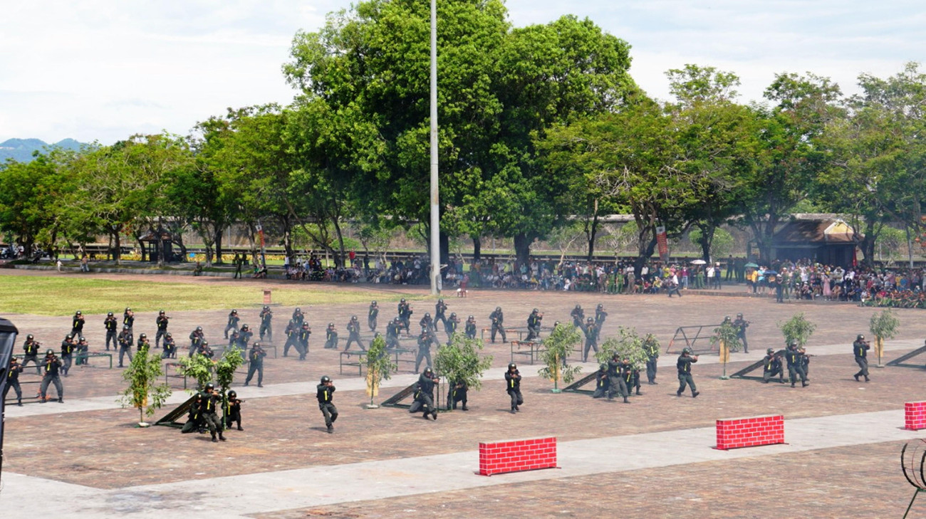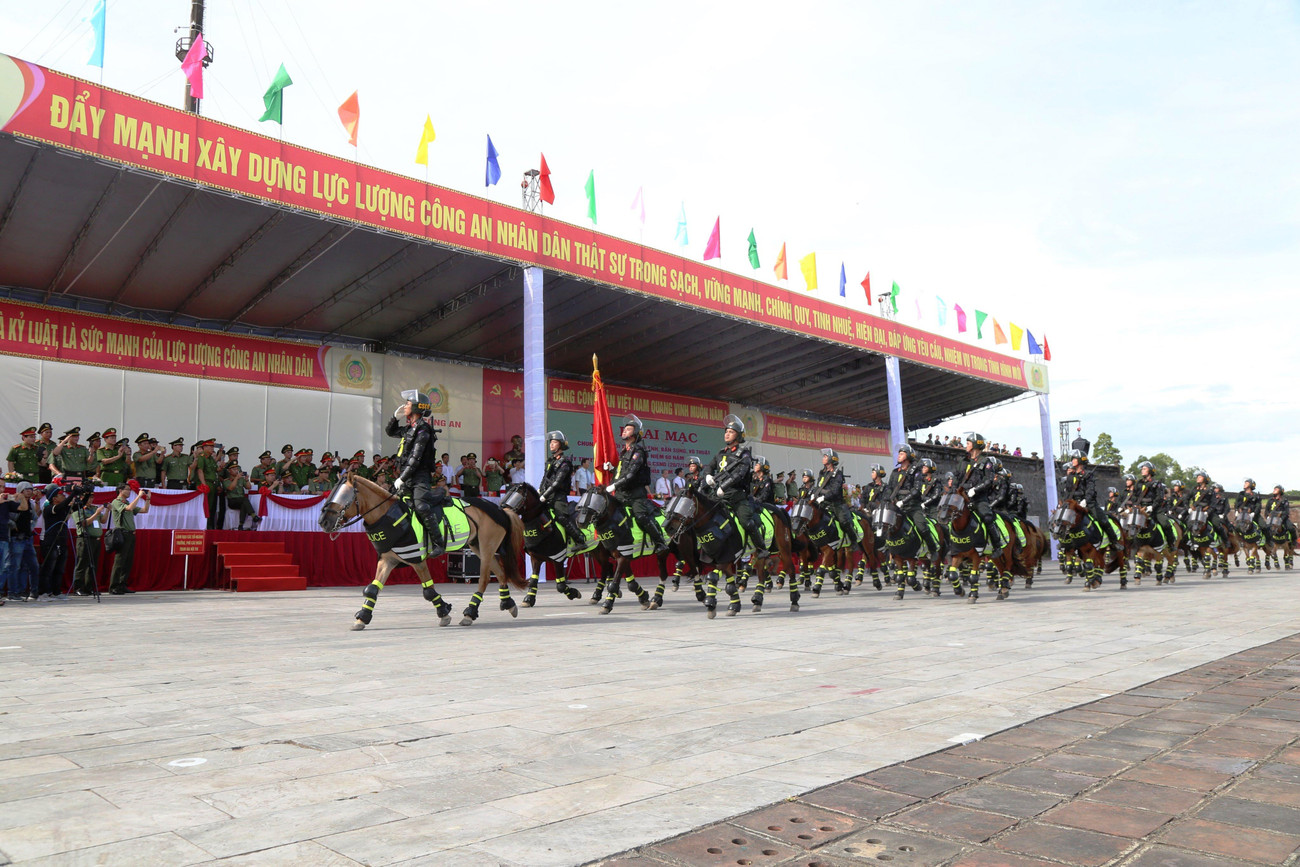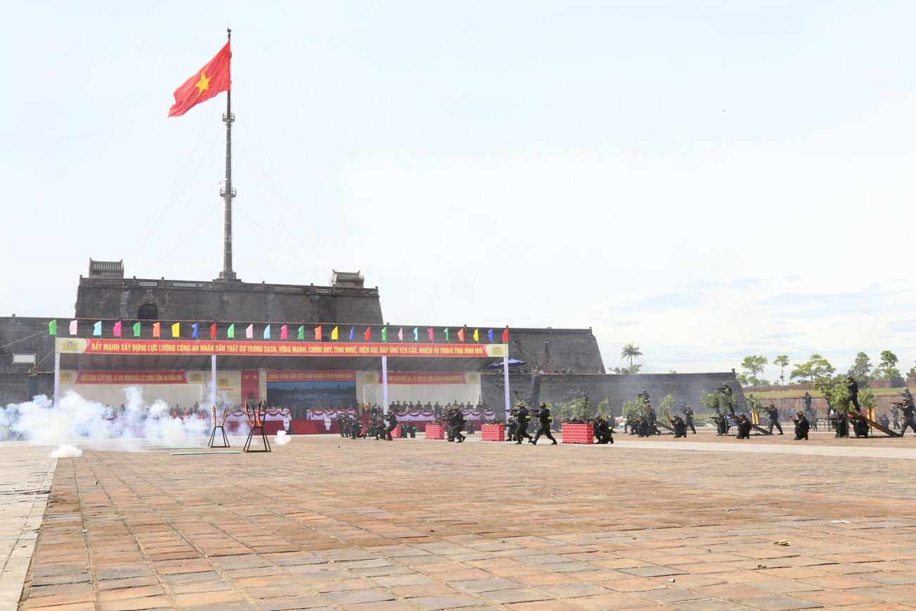 | Sau lễ khai mạc vào sáng 4/7 tại Quảng trường Ngọ Môn (TP Huế) là phần duyệt đội ngũ của 16 đội tuyển; khối nữ Cảnh sát giao thông, Cảnh sát cơ động, Phòng cháy chữa cháy và đội ngũ tân binh của Công an tỉnh TT-Huế. |