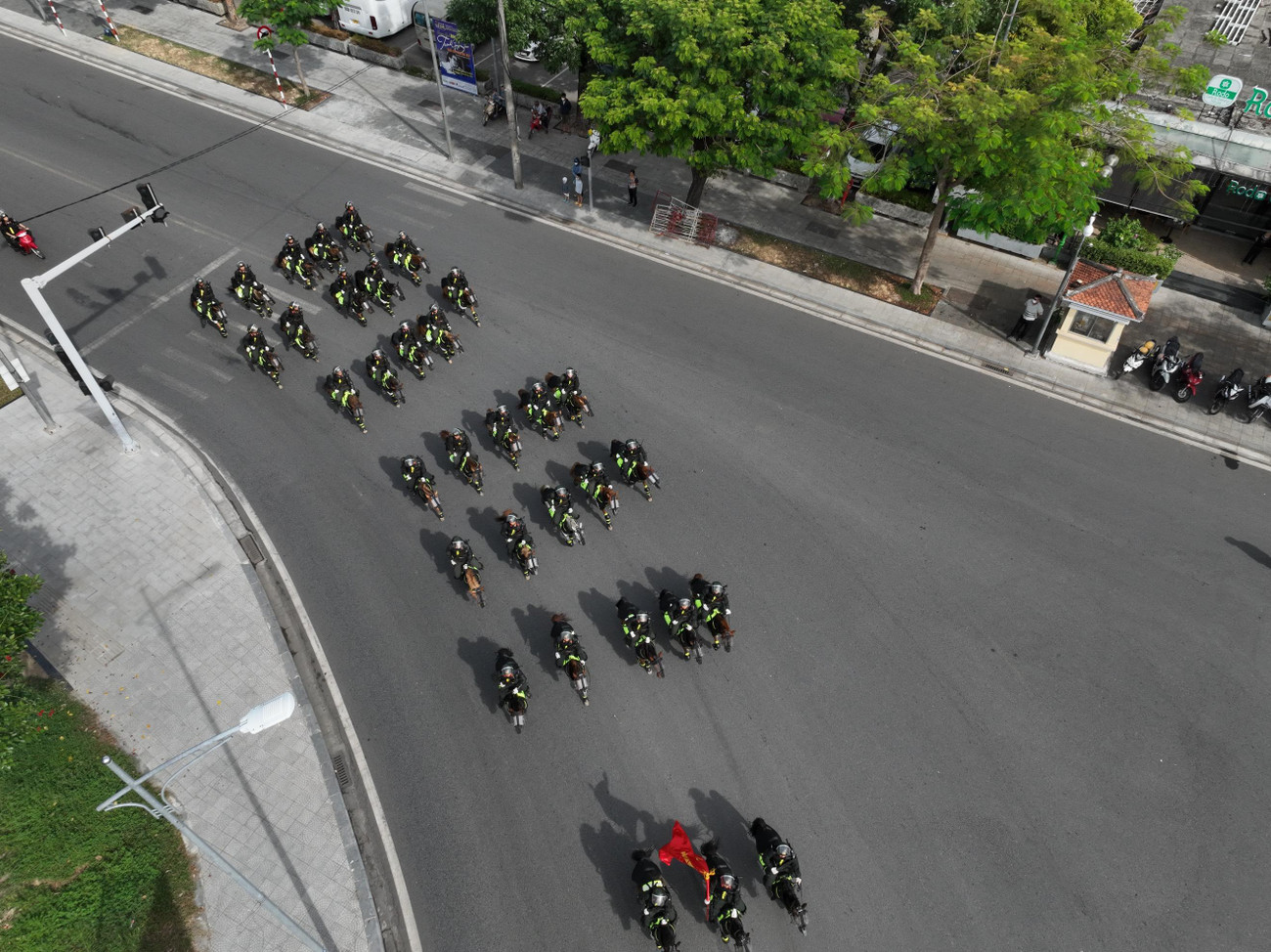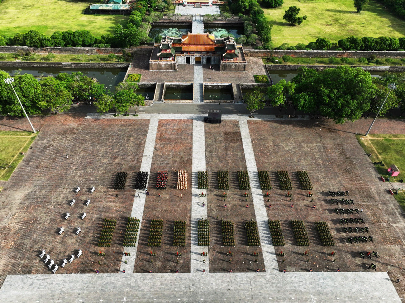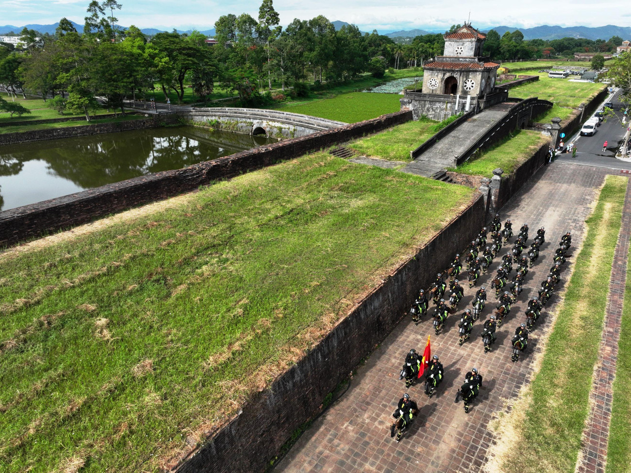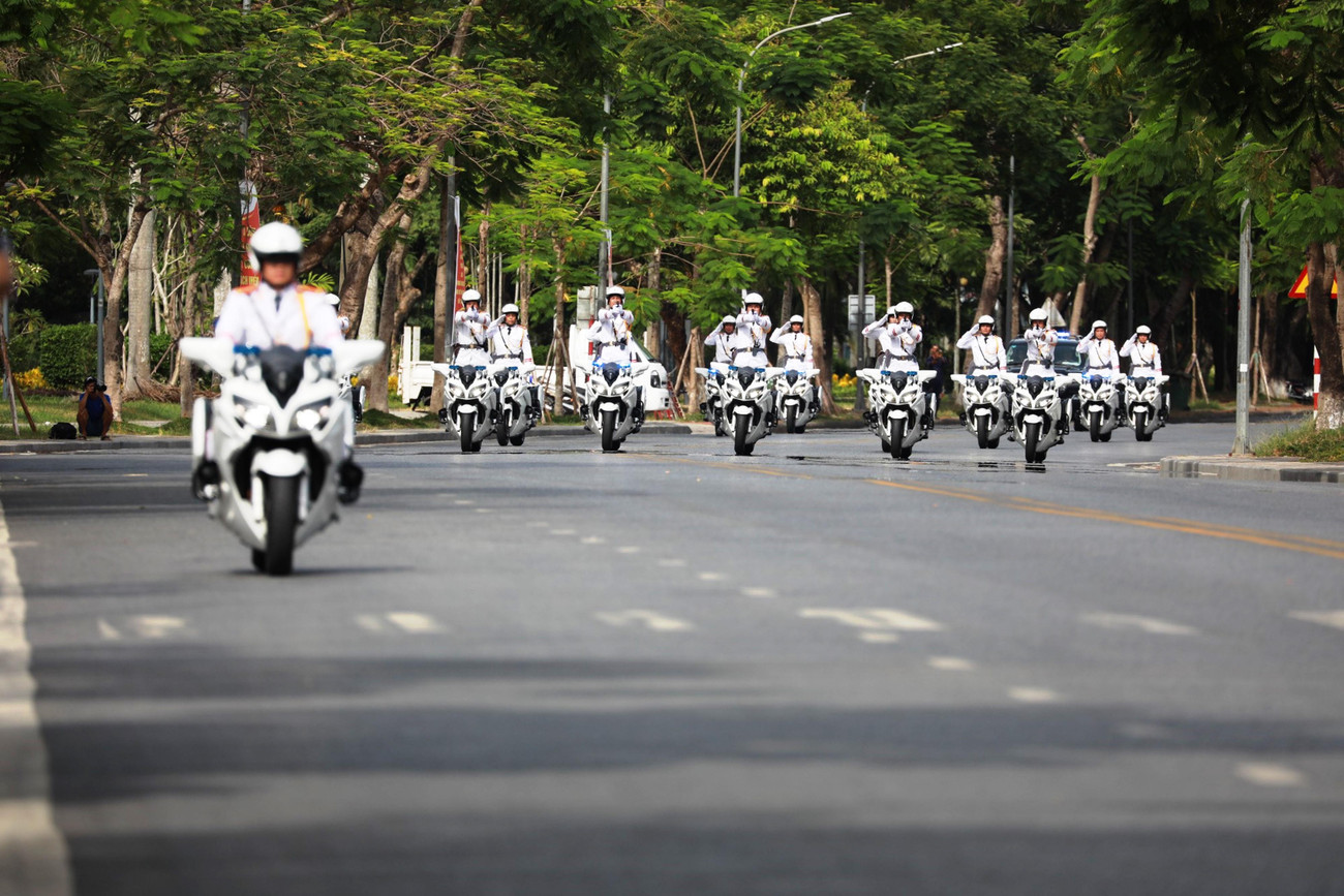 | Tiếp đến là khối mô tô và khối kỵ binh di chuyển ra di tích Ngọ môn - Đại nội Huế, sau đó diễu hành trên các trục đường từ phố Lê Duẩn qua các cầu Trường Tiền, Phú Xuân… |