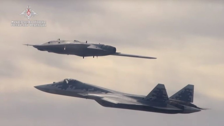 Đoạn video ghi lại cảnh song hành ngoạn mục giữa Okhotnik và Su-57 vừa được công bố bởi Bộ Quốc phòng Nga.