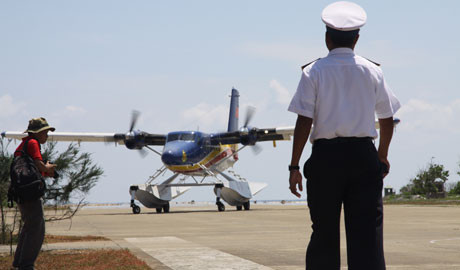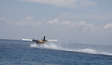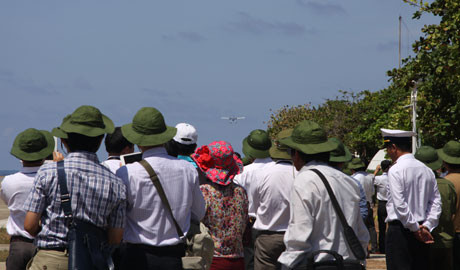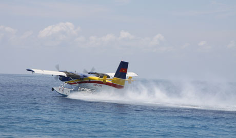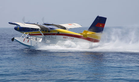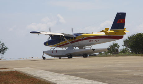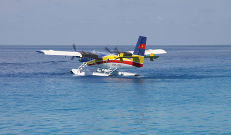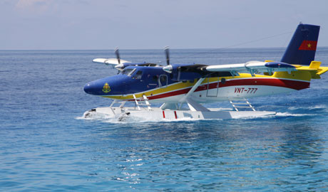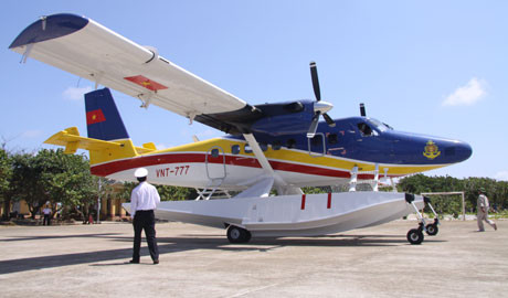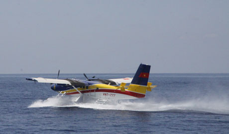Ngày 26/4, đúng dịp ra Trường Sa, PV đã được chứng kiến cảnh thủy phi cơ DHC 6 mang số hiệu VNT 777 của Hải quân Việt Nam tập luyện ngay trước âu tầu của Trường Sa Lớn.