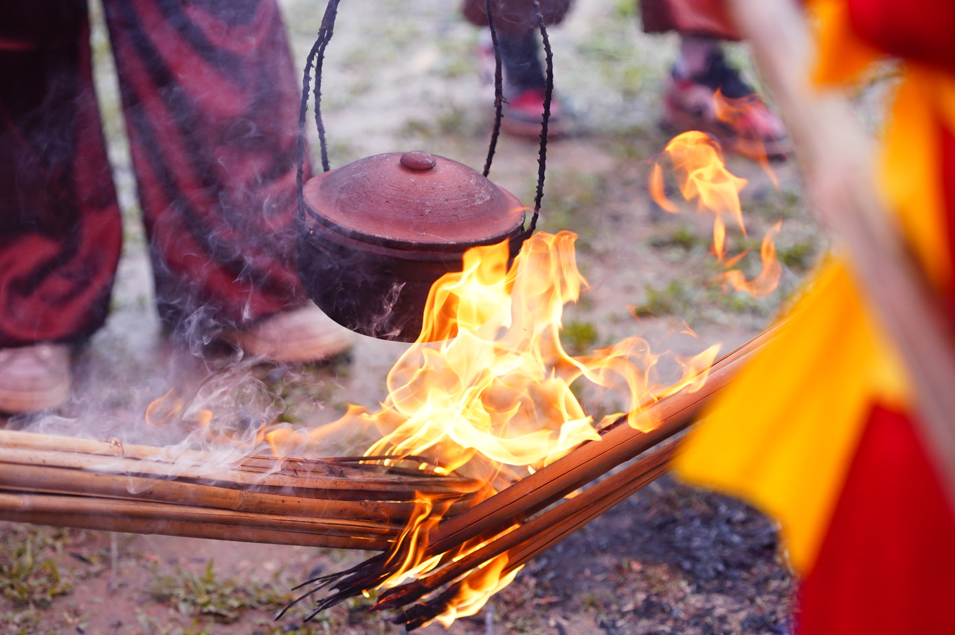 Đây là một trong phần thi gay cấn nhất lễ hội. Vượt qua phần thi này mới có lửa để luộc gà, nấu cơm.