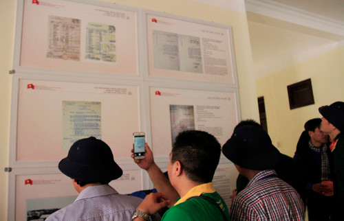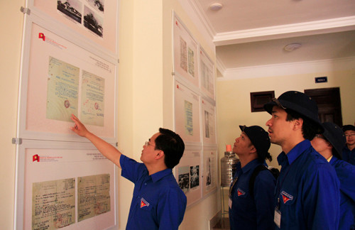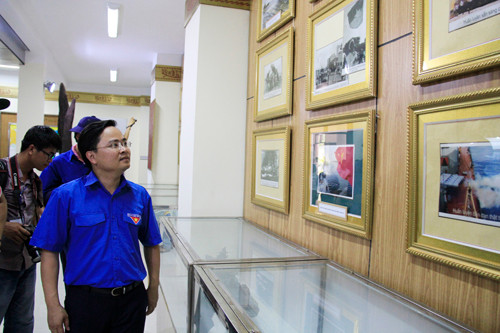 Các đại biểu Hành trình tuổi trẻ vì biển đảo quê hương 2015 xem tư liệu triển lãm về Hoàng Sa, Trường Sa