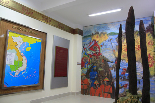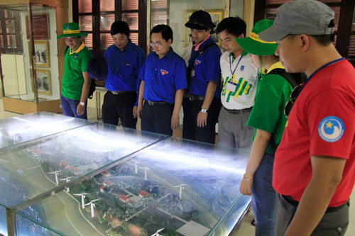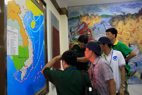 Các đại biểu Hành trình tuổi trẻ vì biển đảo quê hương 2015 thăm nhà trưng bày tư liệu, mô hình về Hoàng Sa, Trường Sa.