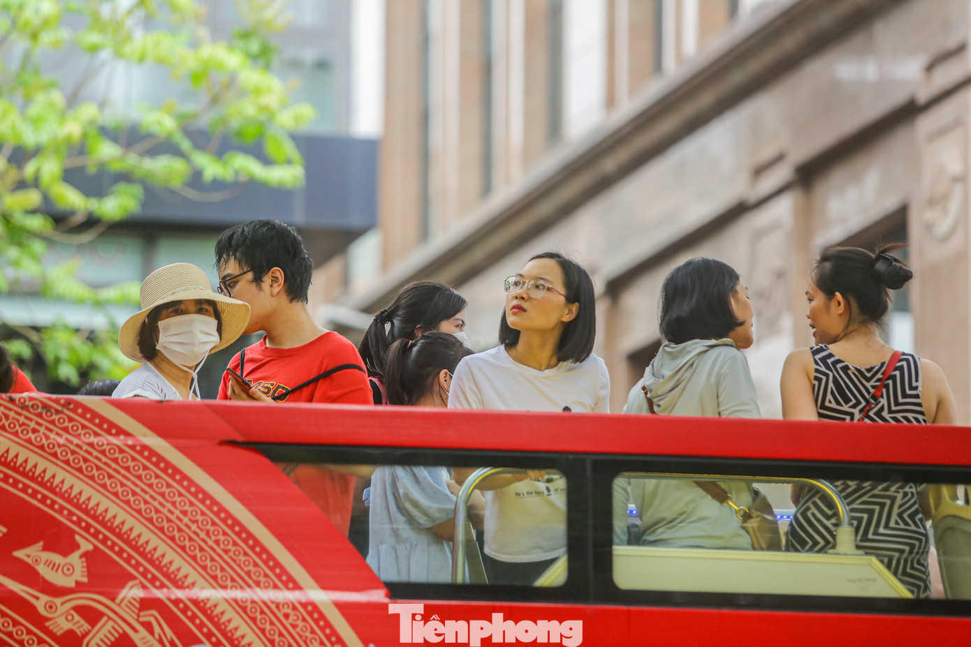| Hàng nghìn người dân, du khách đã chọn dịch vụ xe buýt hai tầng miễn phí, tham quan Hà Nội trong ngày đầu tiên của kỳ nghỉ lễ (29/4). |