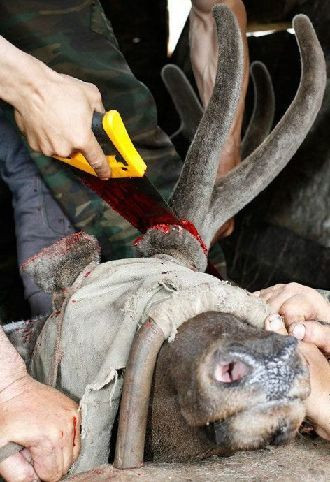Khi khách hàng đến trang trại, một tay cầm cưa, một tay cầm chai rượu trắng, ông dẫn khách đến một chuồng có 5-6 con hươu. Ông bắn thuốc mê vào một con. Sau đó, ông buộc chân chúng lại, cưa gạc của hươu. Cuối cùng là cắt đứt động mạch ở cổ hươu.