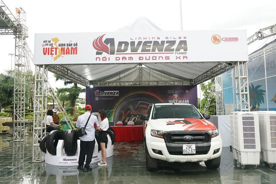 Bên cạnh đó, lốp ô tô Advenza, dòng lốp đạt tiêu chuẩn khắt khe tại các thị trường có ngành công nghệ ô tô hàng đầu cũng có mặt tại chương trình Xếp xe kỷ lục. Là sản phẩm của công ty Casumina, lốp Advenza cho khả năng vận hành êm ái, độ bám đường tuyệt vời, an toàn, ngay cả những ca phanh gấp, giúp các chủ xe sẽ yên tâm trên mọi nẻo đường.