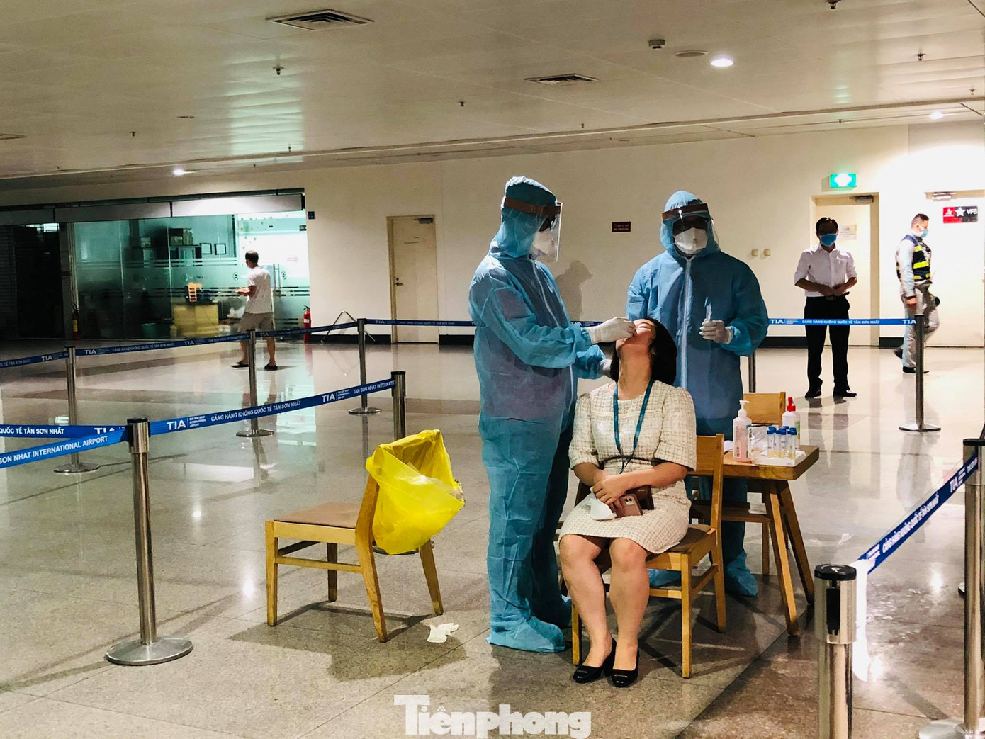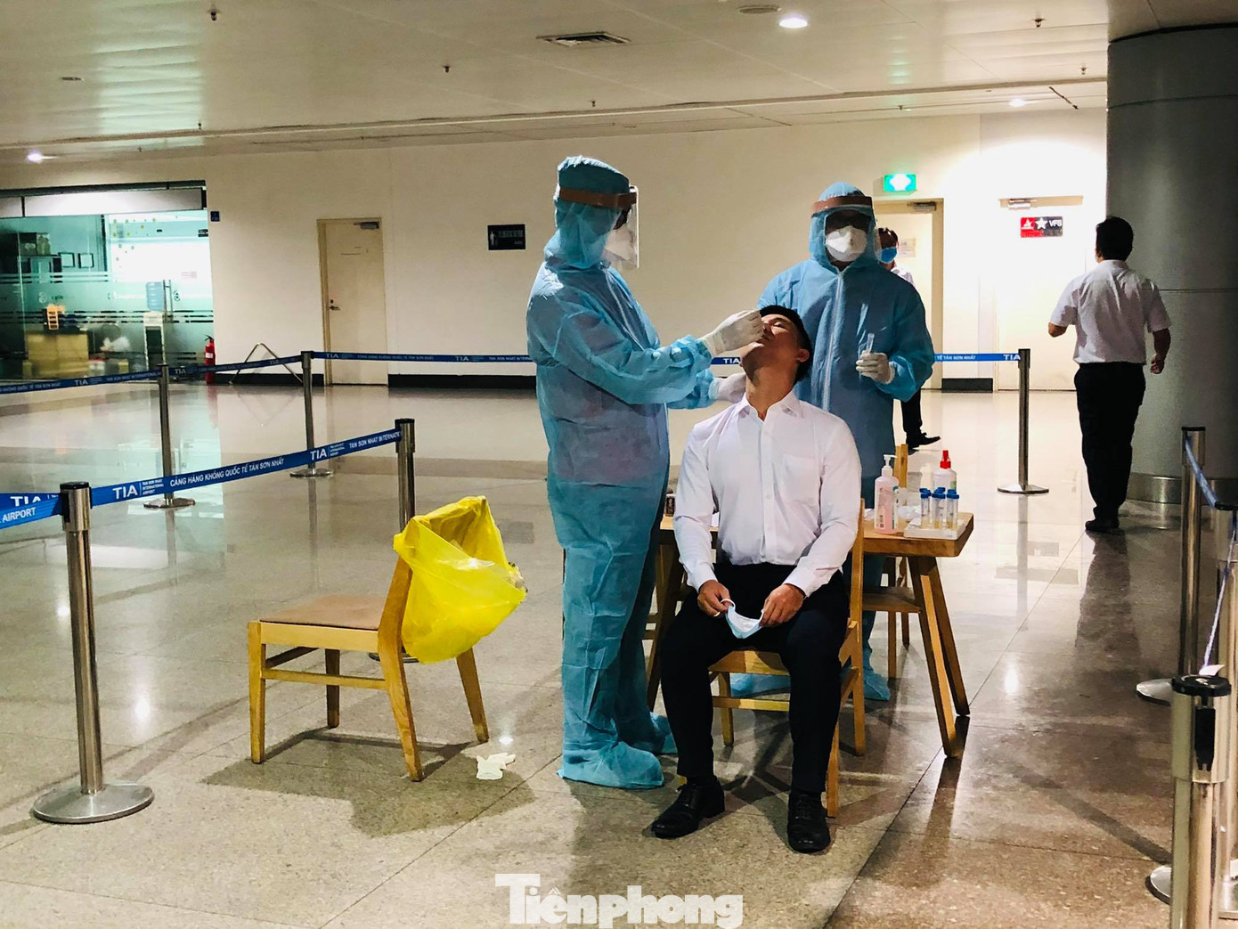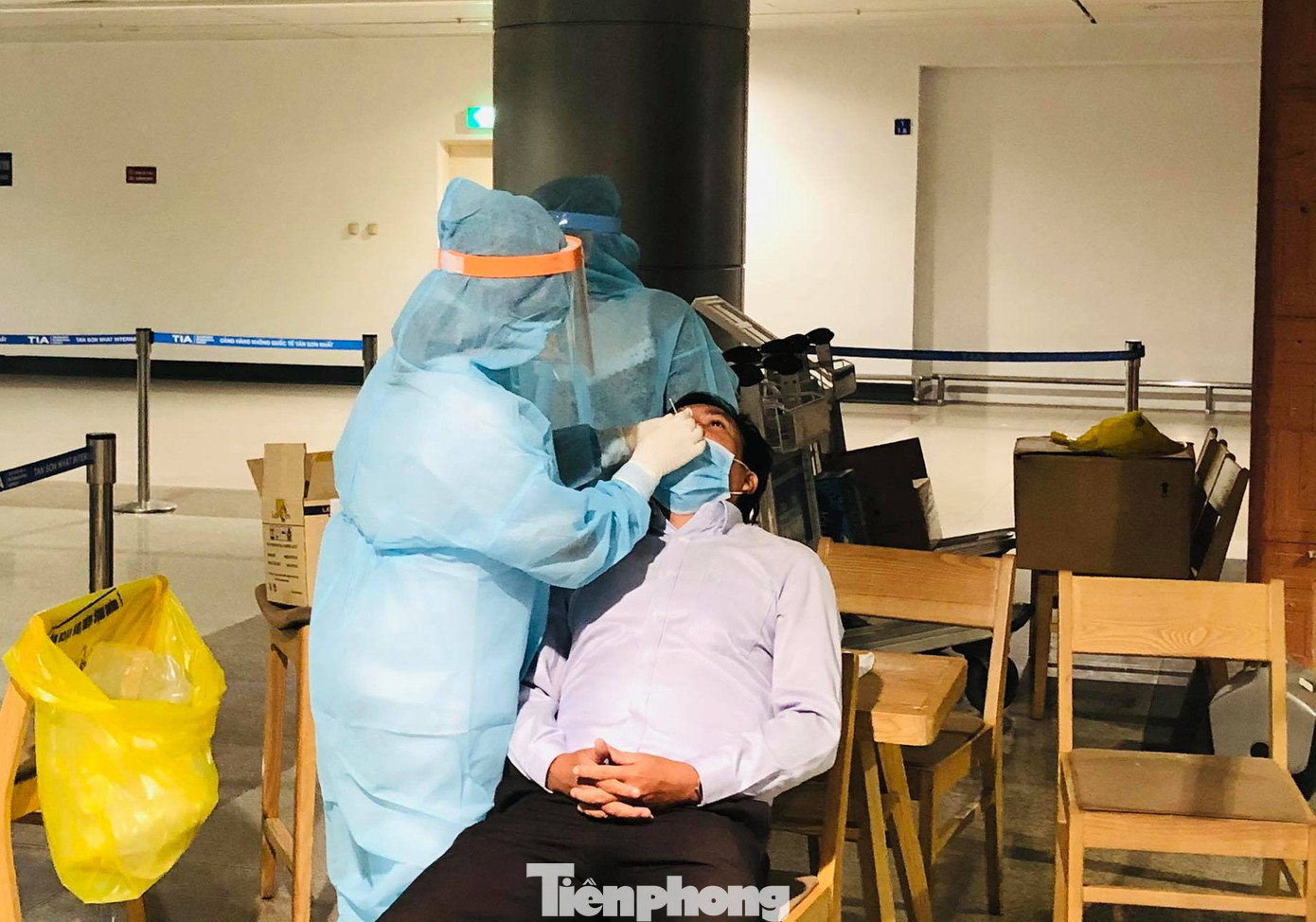 Những hình ảnh lấy mẫu xét nghiệm cho các bộ công nhân viên khối cơ quan bộ phận mặt đất được ghi nhận tại sân bay Tân Sơn Nhất trong chiều ngày 17/2.