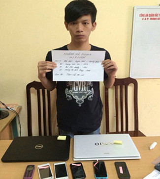 Vũ khai quen Y. (SN 1996, quê Thái Bình, đang ở trọ tại Minh Khai, Bắc Từ Liêm) nên đến phòng trọ của bạn xin ở cùng. Rạng sáng 31/7, lợi dụng mọi người trong phòng trọ đang ngủ, Vũ trộm cắp 2 laptop và 5 điện thoại, chia ra cất giấu các nơi, định mang ra ngoài tiêu thụ. Nhận được trình báo của các bị hại, Công an phường Minh Khai làm rõ Vũ đã trộm số tài sản trên, tổng trị giá hơn 25 triệu đồng.
