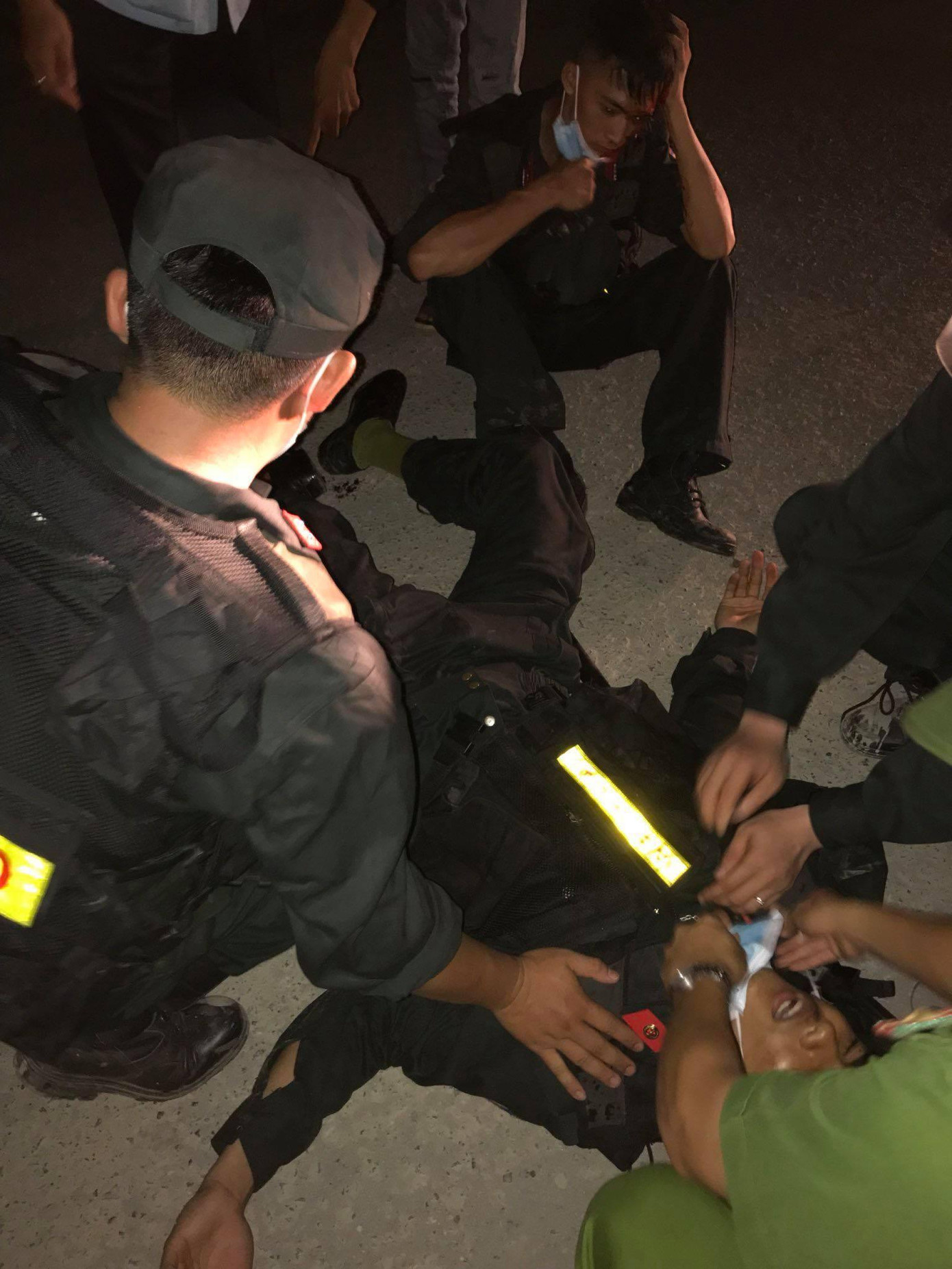 | Người dân xô xát với lực lượng chức năng làm 5 cán bộ, chiến sĩ Công an bị thương. |
