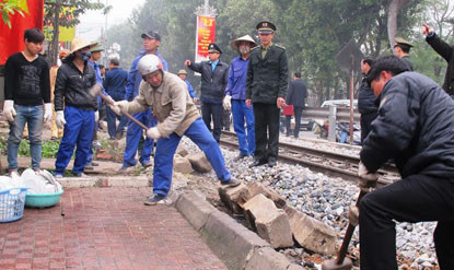 Lực lượng chủ lực tham gia giải tỏa này gồm hơn 100 cán bộ, công nhân viên của công ty Quản lý đường sắt Hà Hải, cán bộ UBND các phường trên địa bàn có đường sắt đi qua và cán bộ Cục Cảnh sát giao thông, Cục Đường sắt Việt Nam. Ông Lê Hồng Giang, GĐ Cty Quản lý đường sắt Hà Hải cho biết, sau khi có chỉ thị của lãnh đạo Tổng Cty Đường sắt Việt Nam, công ty đã huy động hầu hết các phòng ban, đoàn thể của công ty tham gia vào kế hoạch này.