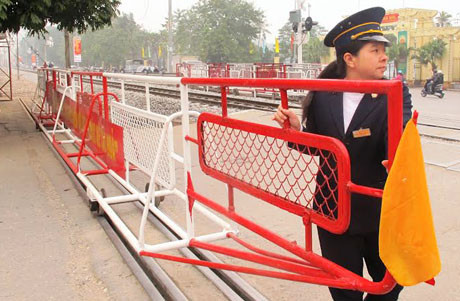 Các chắn đường ngang tại các điểm giao cắt cũng được khoác một màu sơn mới để đón Tết.