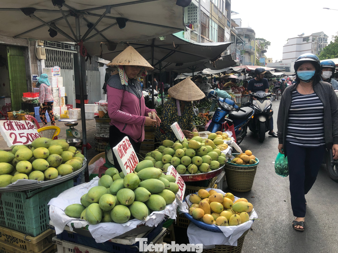 TPO - Xoài cát Hòa Lộc vào mùa được bán tại nhiều chợ ở TPHCM, giá chỉ từ 25.000 - 40.000 đồng/kg, chỉ bằng 1/3 so với trước.