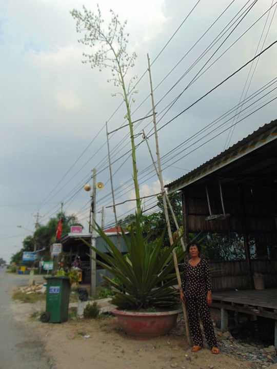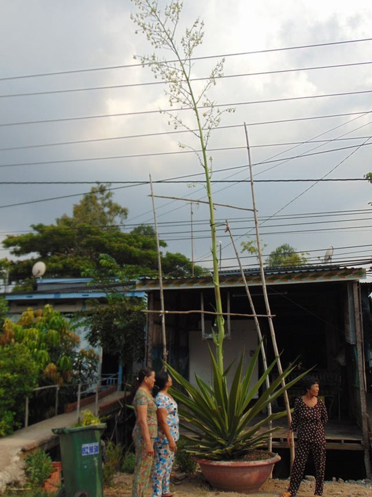 Hơn 3 tháng trước cây kiểng xuất hiện nụ và phát triển nhanh, mỗi ngày cao thêm gần 20cm và hiện nay đã cao hơn 6m. Thấy chuyện lạ nên rất nhiều người đến xem”.