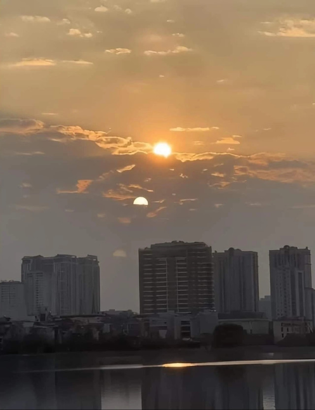 Cảnh tượng "2 mặt trời" cùng lúc xuất hiện trên bầu trời ở Hà Nội - ảnh: Fb Châu Vũ