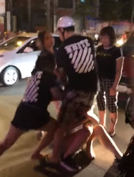 Trong khi cô gái ôm chặt chân nam thanh niên vừa khóc vừa cầu cứu thì người này cũng tìm mọi cách để bảo vệ cho cô gái khỏi bị đánh. Sự việc cũng khiến cho cả trăm người dân hiếu kỳ dừng lại theo dõi làm giao thông gặp khó khăn.