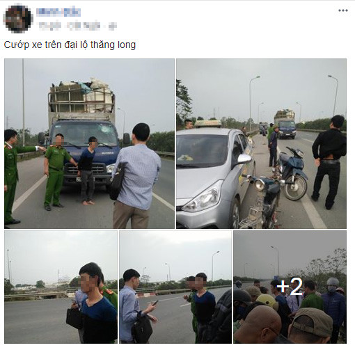 Theo một số người dân cho hay, vào thời điểm trên họ nghe thấy tiếng hô hoán của người điều khiển chiếc xe tải chở phế liệu đang chạy trên đại Lộ Thăng Long hướng về trung tâm Hà Nội đuổi theo một người đàn ông điều khiển xe máy.