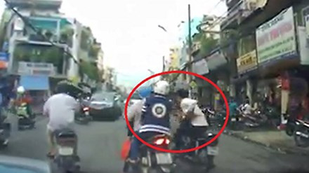 Tên cướp một mình chạy xe máy giật túi xách ở Sài Gòn (XEM VIDEO)