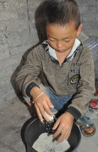Không giống như các trẻ em cùng tuổi khác, Ou không hề có thời gian để chơi. Buổi chiều, em đi xung quanh trường và nơi mình sinh sống để nhặt phế liệu kiếm tiền. "Bố cần phải uống thuốc nhưng em không có tiền", cậu bé nói trên tờ China Youth Daily.
